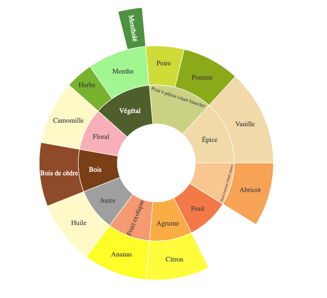 Nez - Les arômes se montrent plutôt discrets, évoluant autour de la vanille douce, complétée par des notes de menthe fraîche, de cèdre et de fruits à chair blanche comme la pomme et l'abricot.